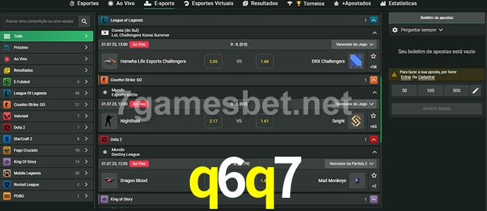 A aposta q6q7 oferece aos jogadores a experiência mais conveniente de apostas em eSports!